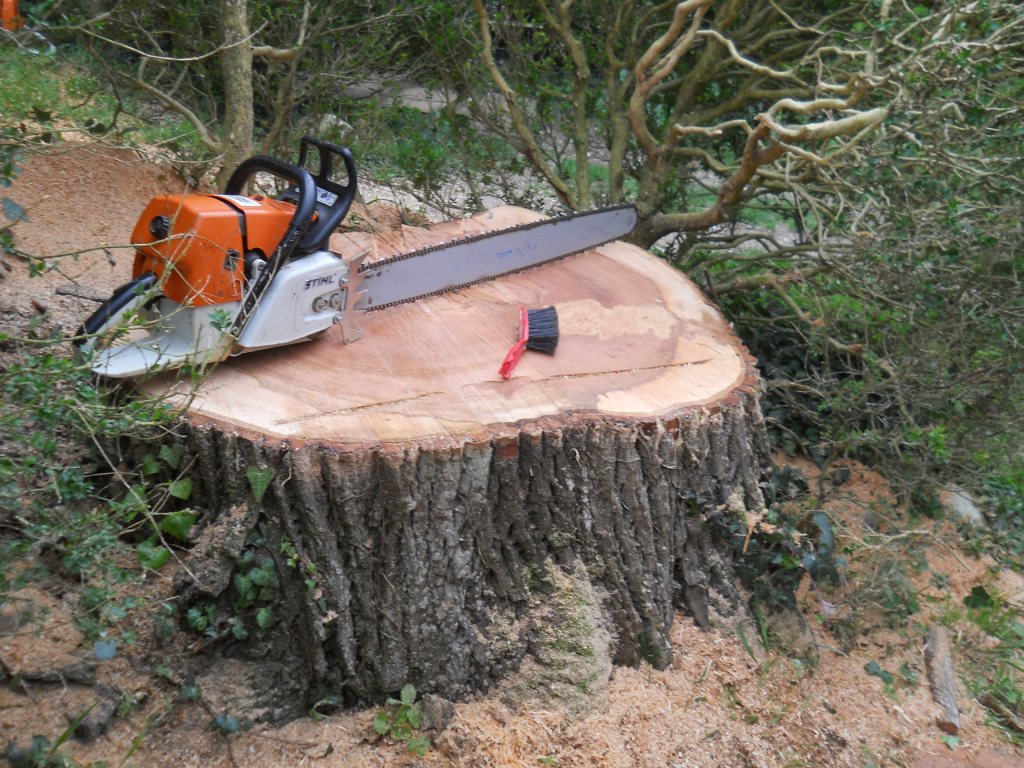 Avant arasage souche (100 cm)en 2 parties. Entaille partie haute